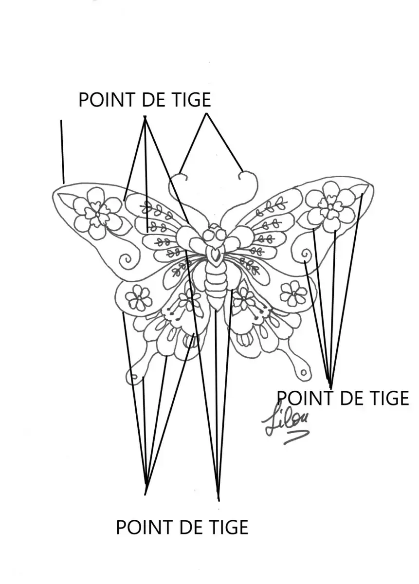 Ce modèle ne présente pas de difficultés particulières en dehors de la finesse du fil à utiliser. Si vous maîtrisez déjà un minimum les points de base : point de tige, point lancé et point bouclette vous ne rencontrerez aucune difficulté particulière.