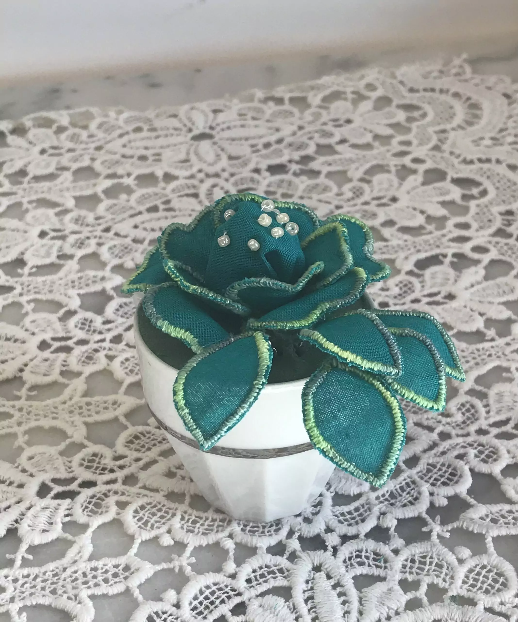- un bout de coton bleu canard pour les éléments en stumpwork