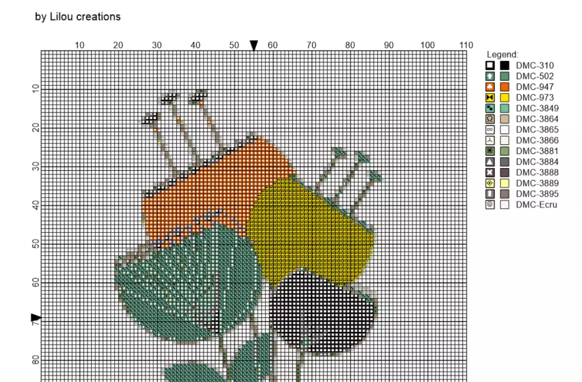 Le diagramme comporte toutes les légendes et les informations écrites nécessaires pour broder votre ouvrage.