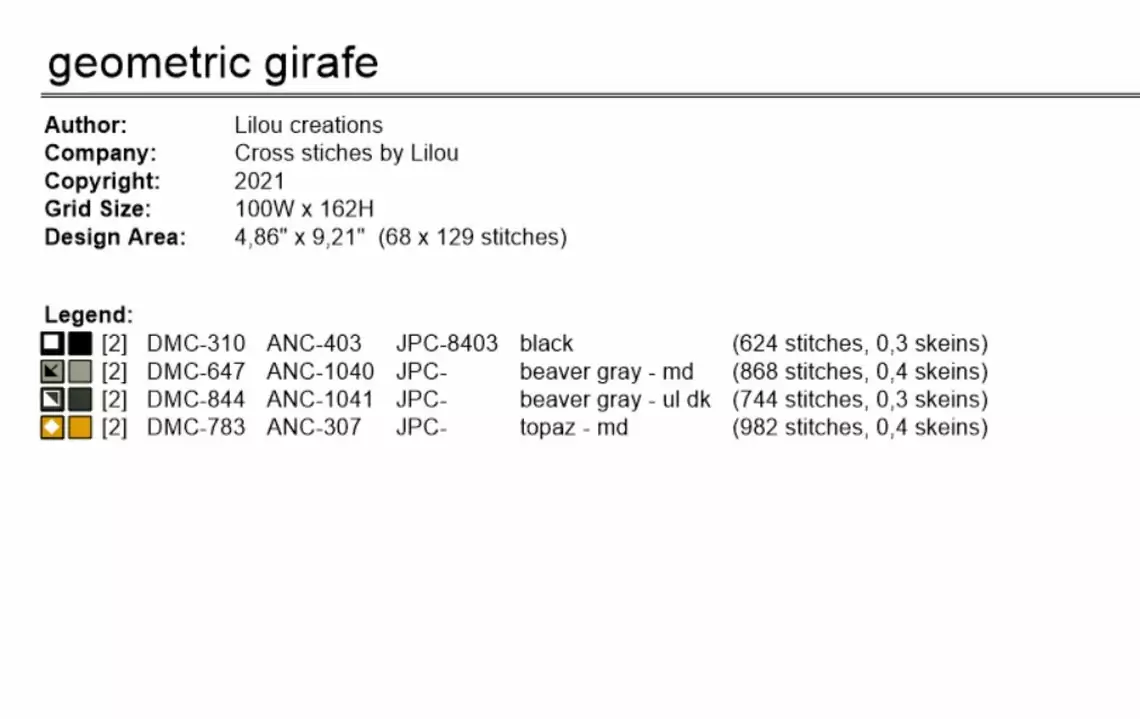 Diagramme au point de croix pour confectionner cette girafe