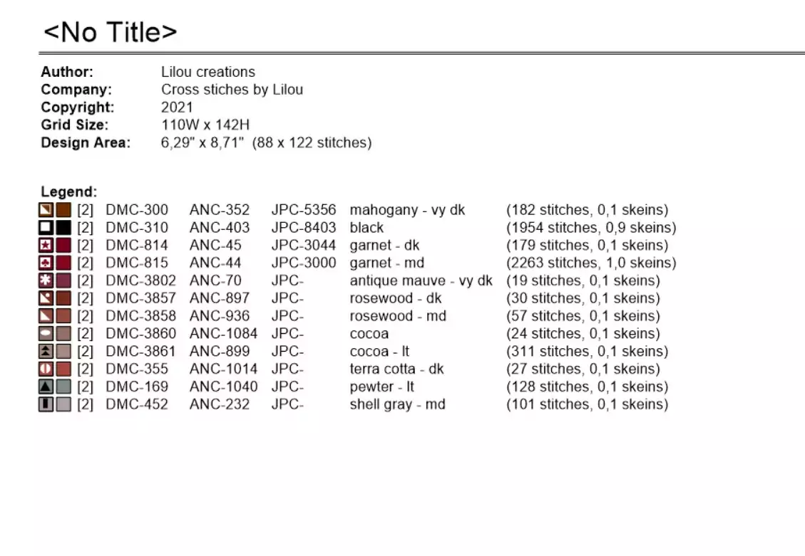 Taille du motif : 88 x 122 points soit 15,9 x 22,12 cm.