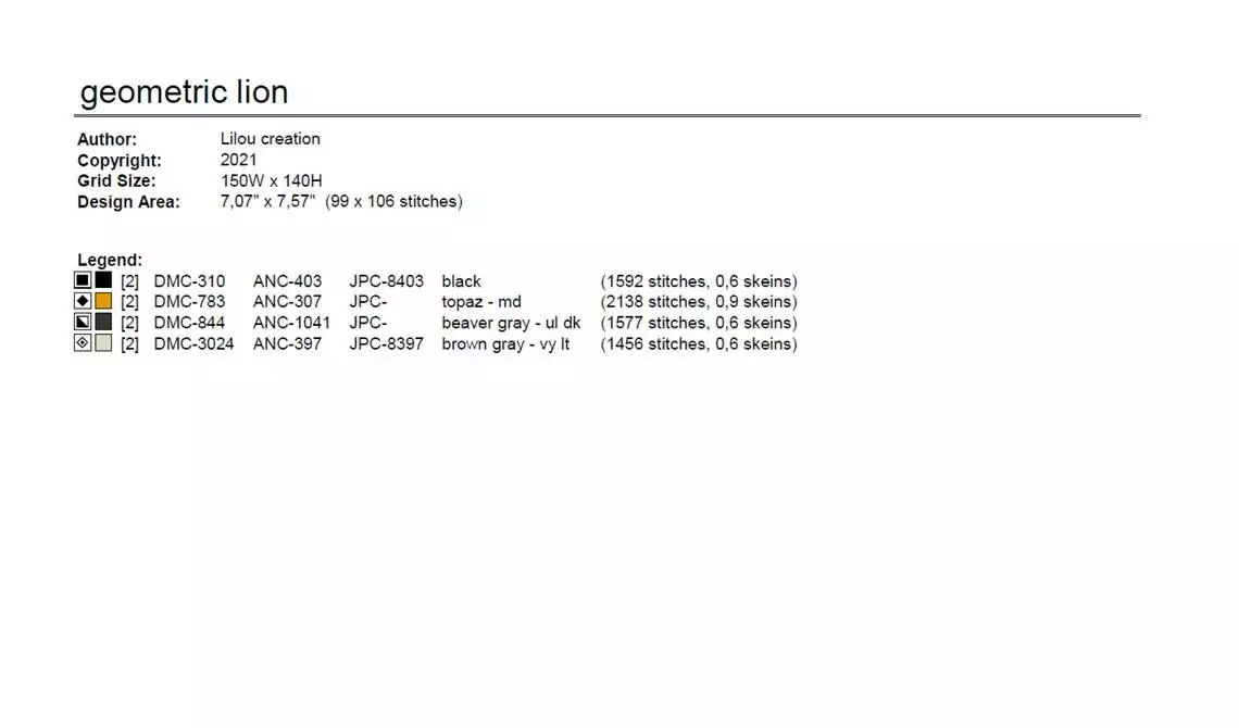 Diagramme points de croix pour confectionner ce modèle de lion contemporain